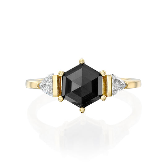טבעת יהלום שחור משושה|Hexagonal Black Diamond Ring