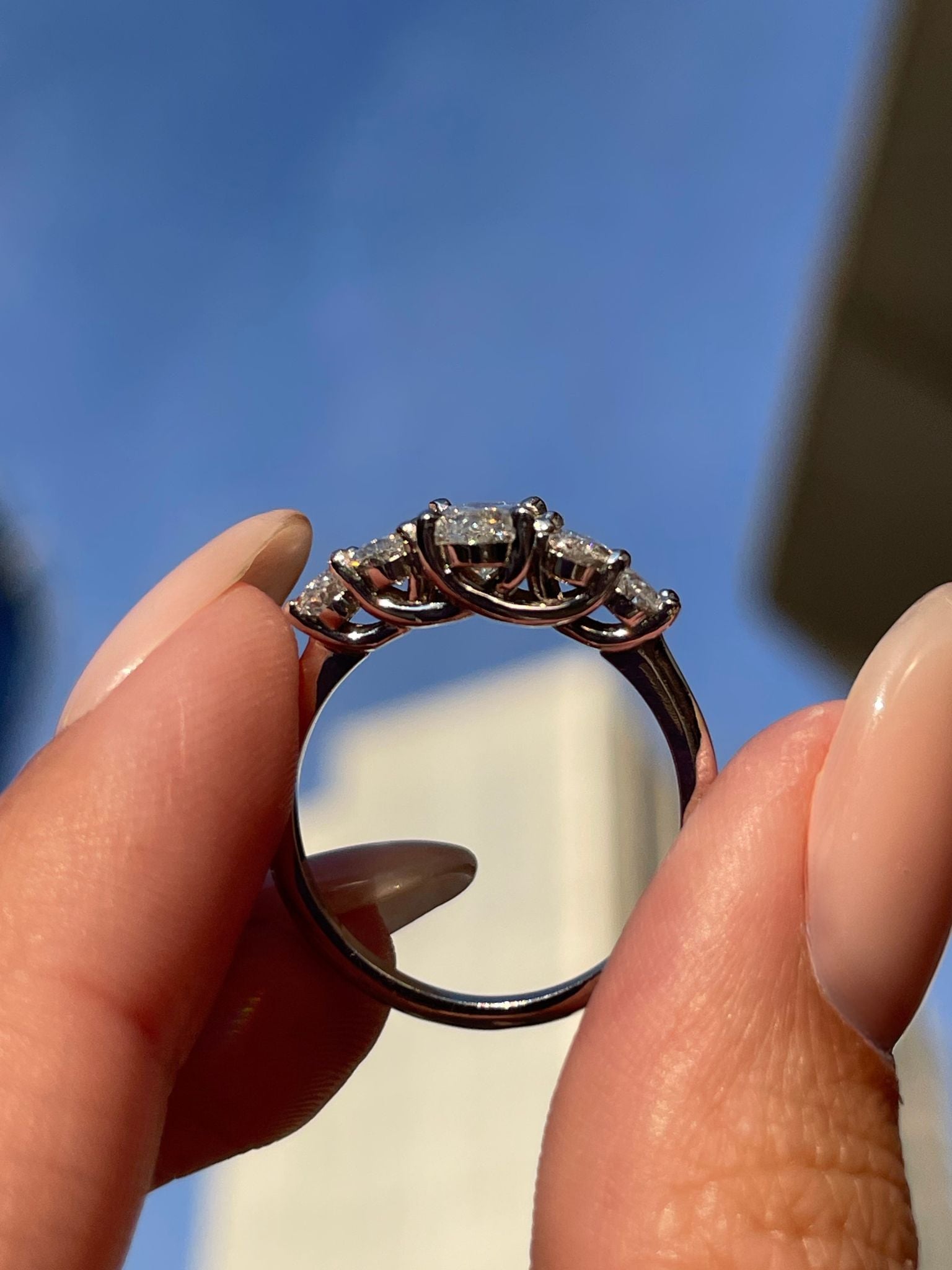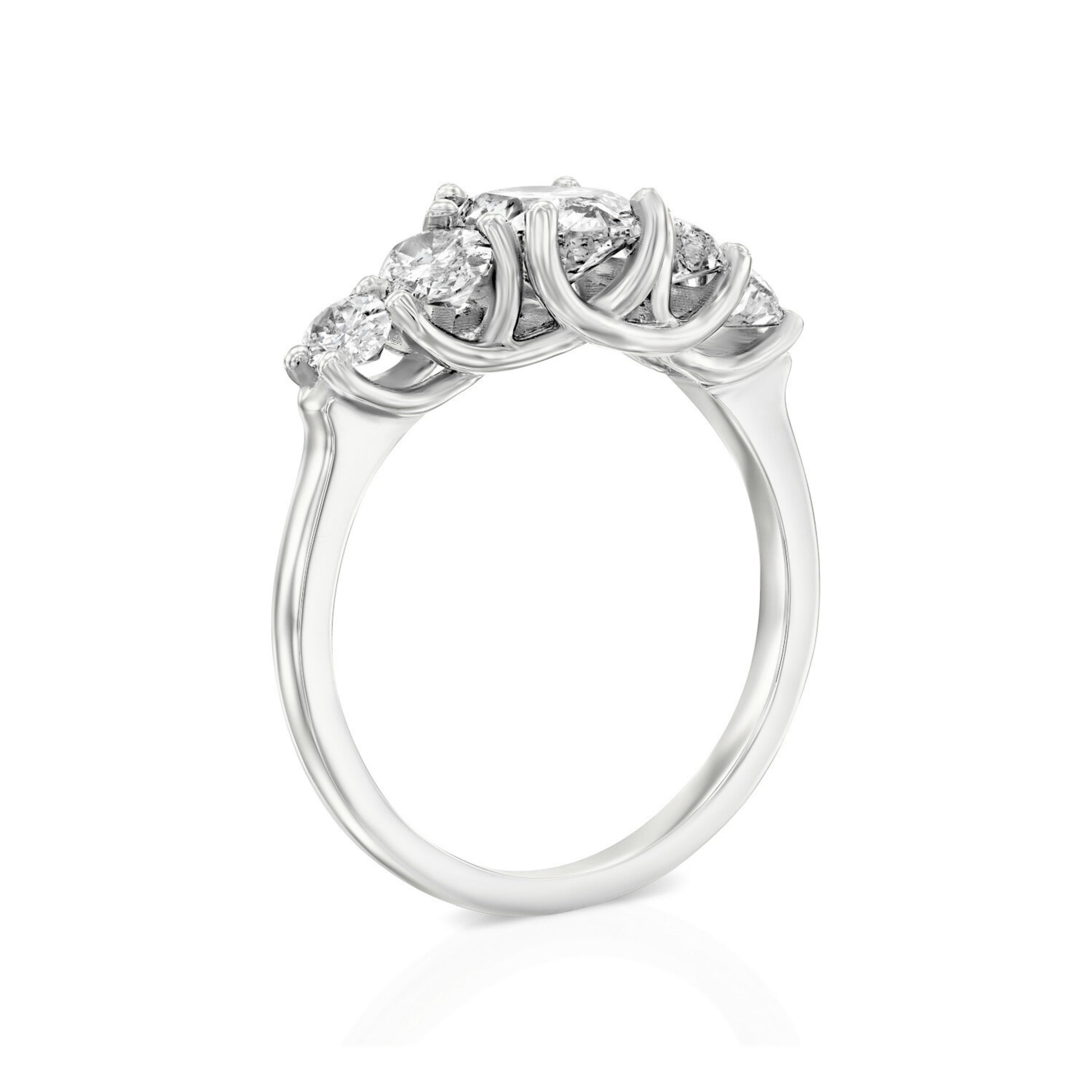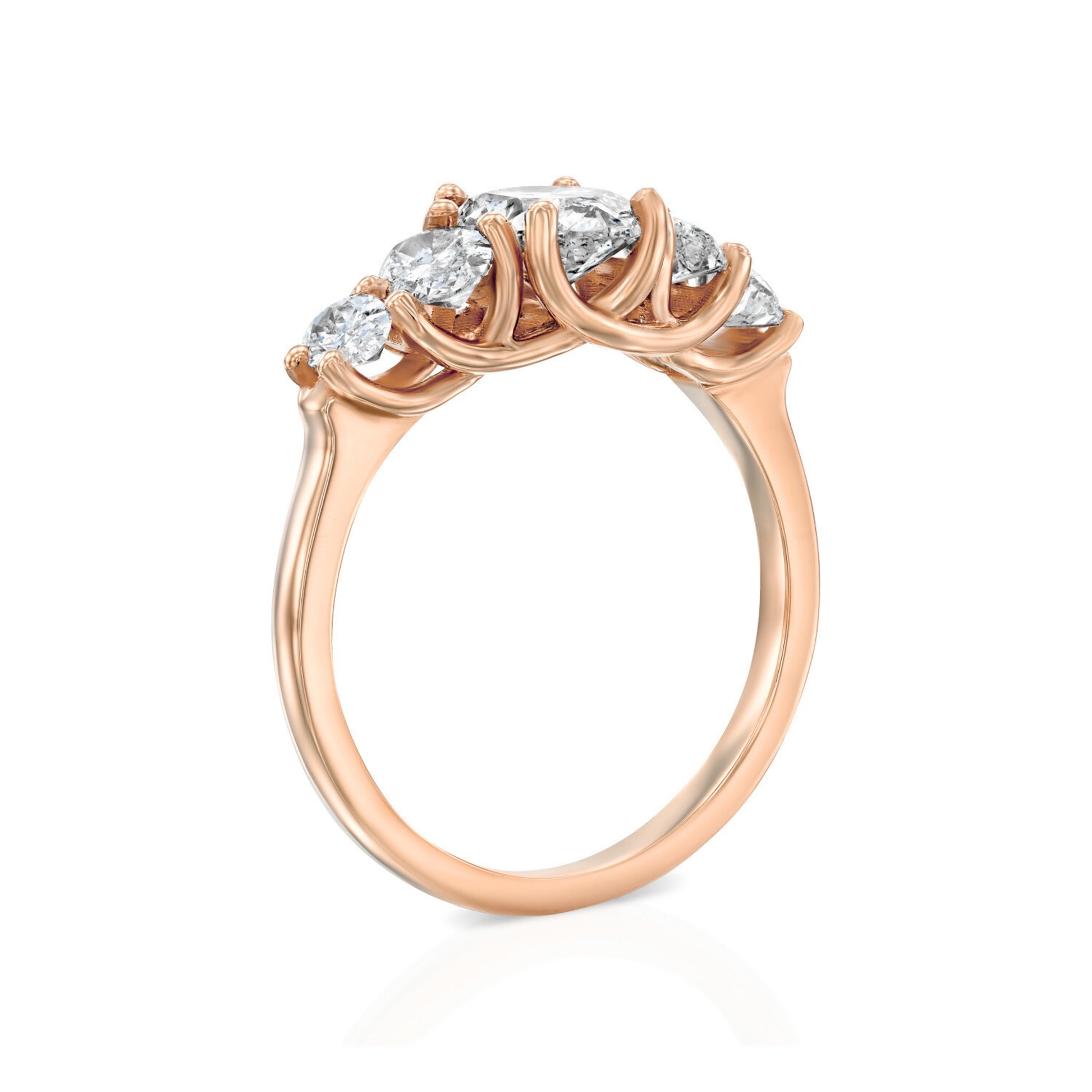 חמישה יהלומי אובל בצורת דה-גרדה – מהגדול שבמרכז ועד לקטנים בצדדים.