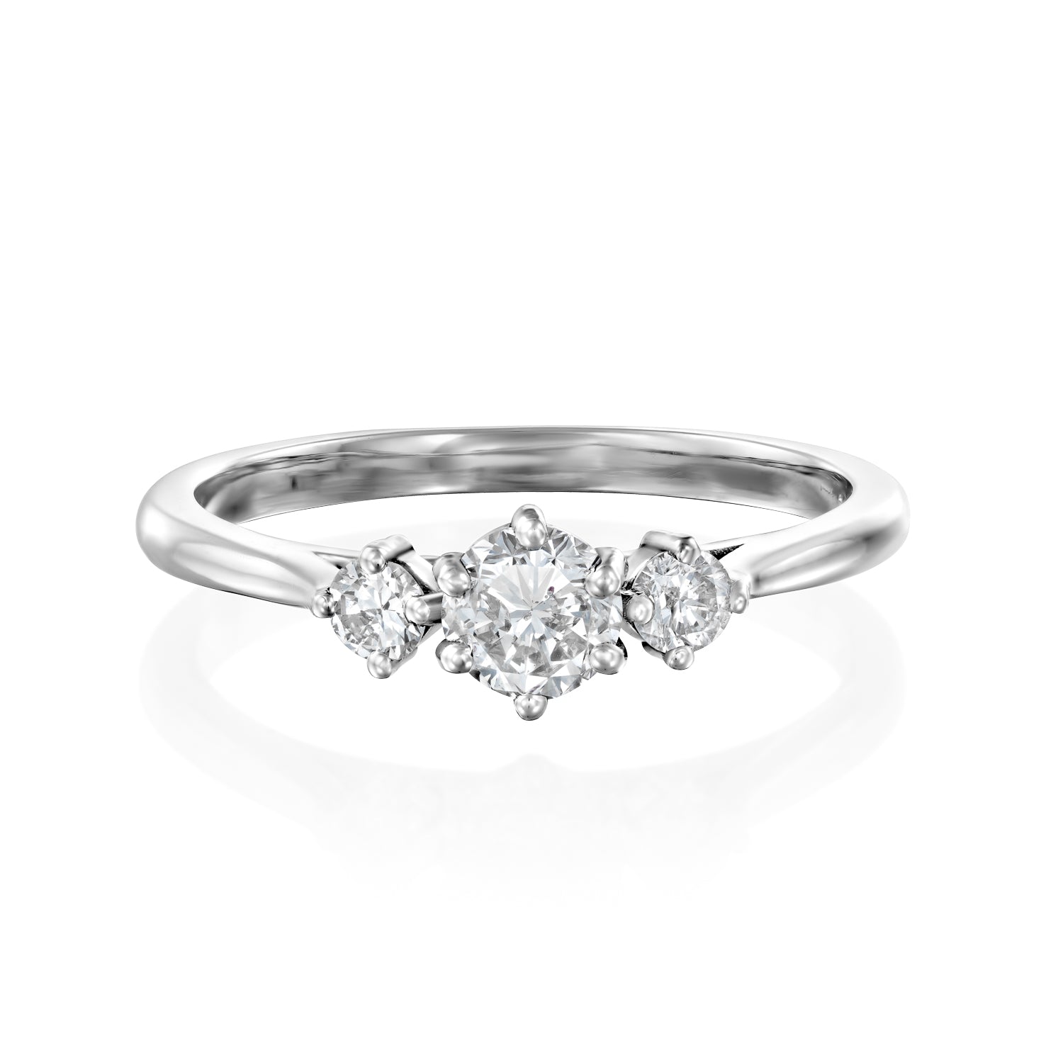 היהלום המרכזי בולט בעל נוכחות, ולצידו שני יהלומים עדינים שמוסיפים איזון, נצנוץ וטאץ.