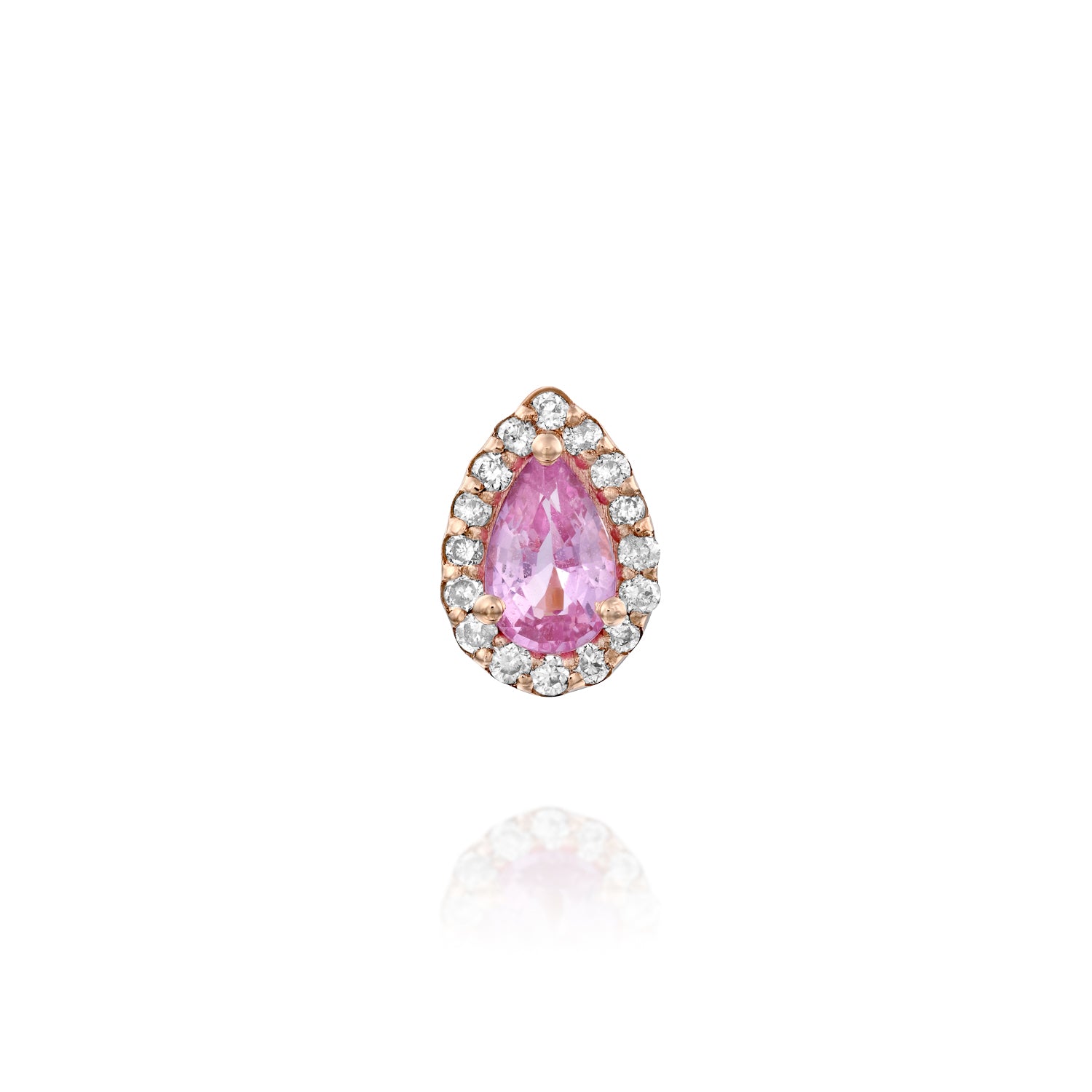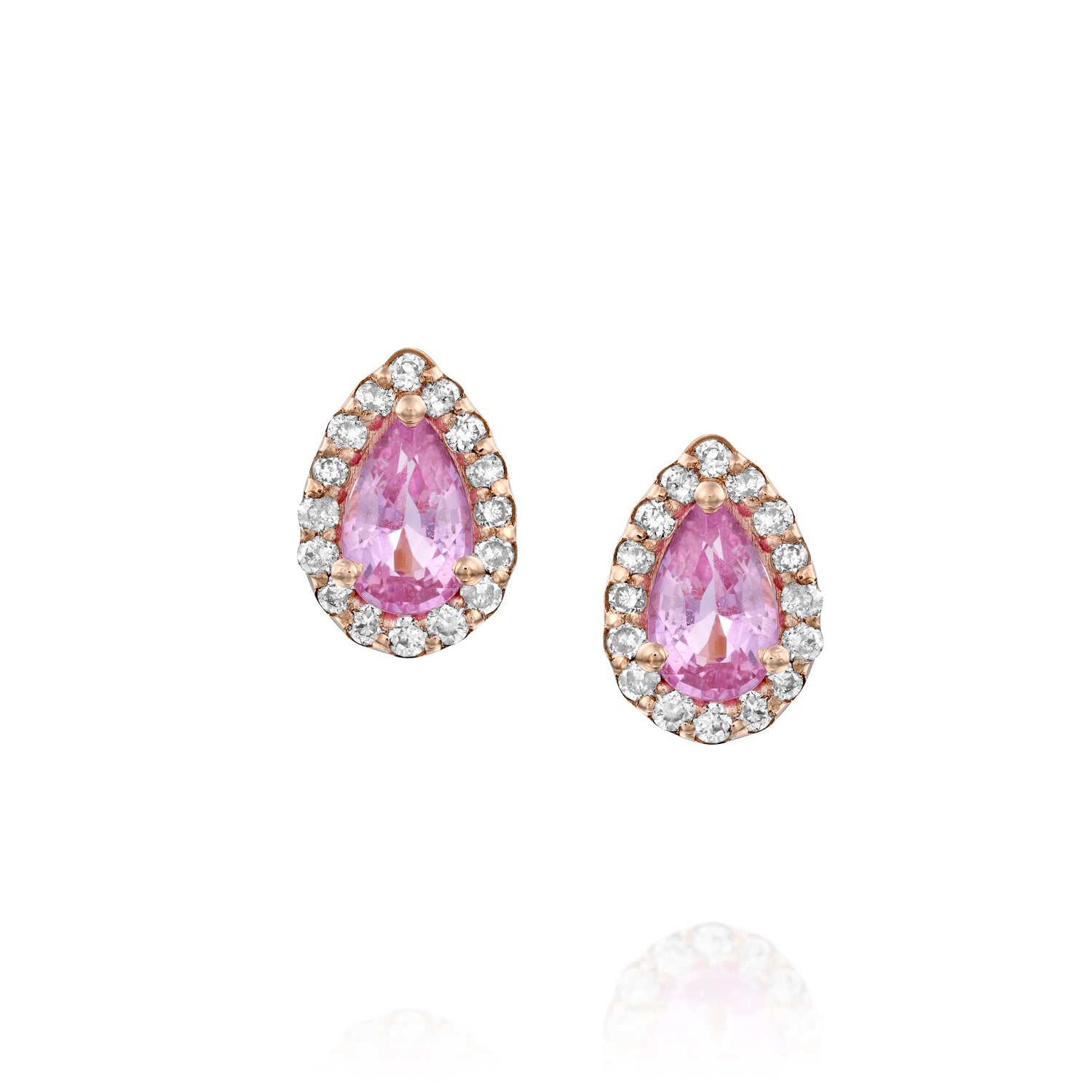 עגיל טיפה קלאסי אך מיוחד, משובץ בספיר ורודה בגוון עדין ומרשים