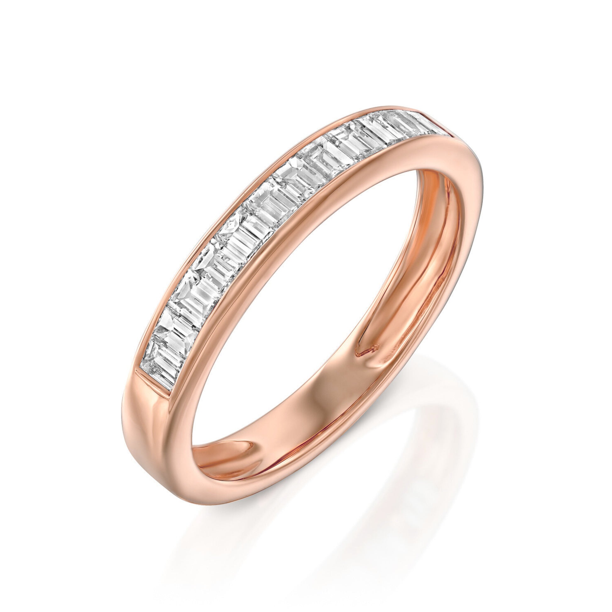 הטבעת שלנו משובצת ב-12 יהלומים מושלמים ונקיים בחיתוך אמרלד.