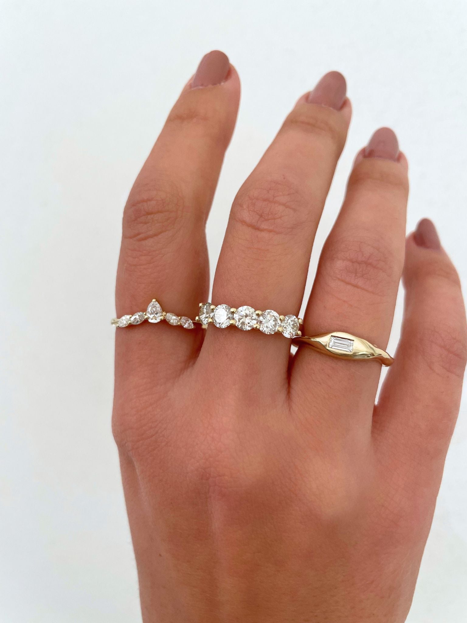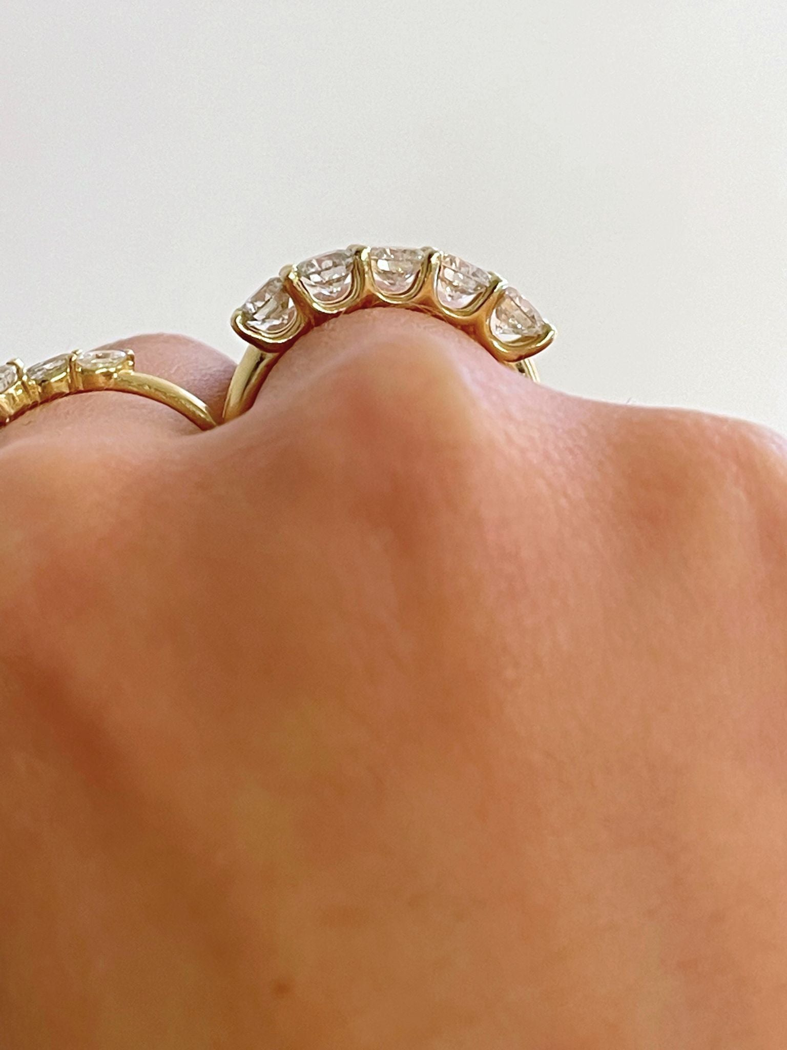 חמשת היהלומים בטבעת שלנו ממוקמים כך שהם מרחפים מעל פני הטבעת ובזכות זה ניתן לראות כל יהלום ולהתרשם ממנו