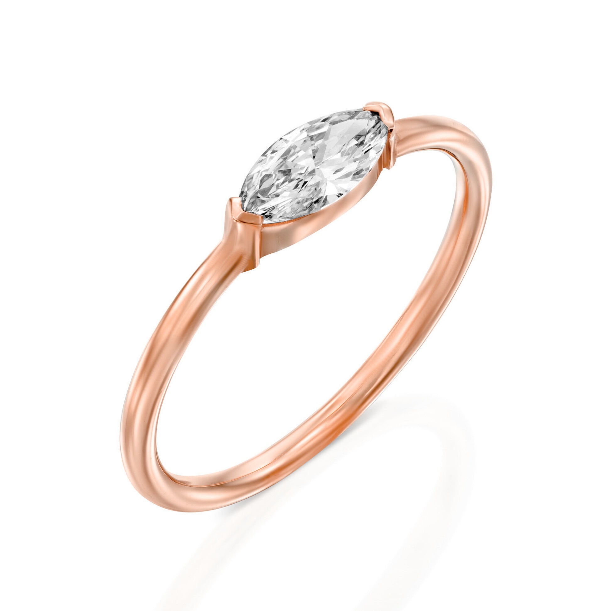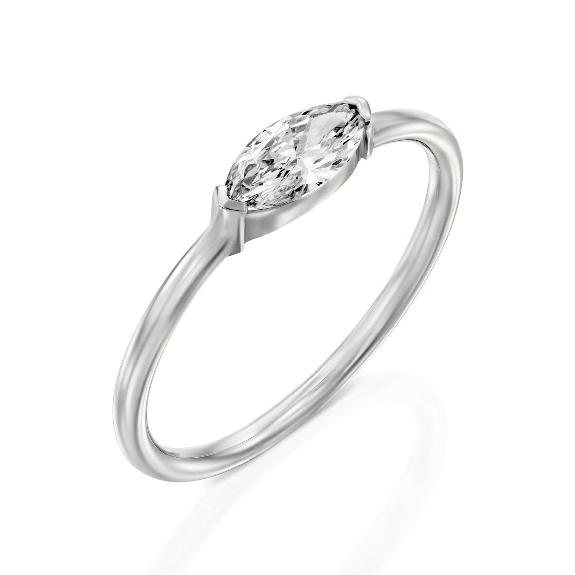 הטבעת שלנו משובצת יהלום מרקיזה שוכב עם שיניים משולשות